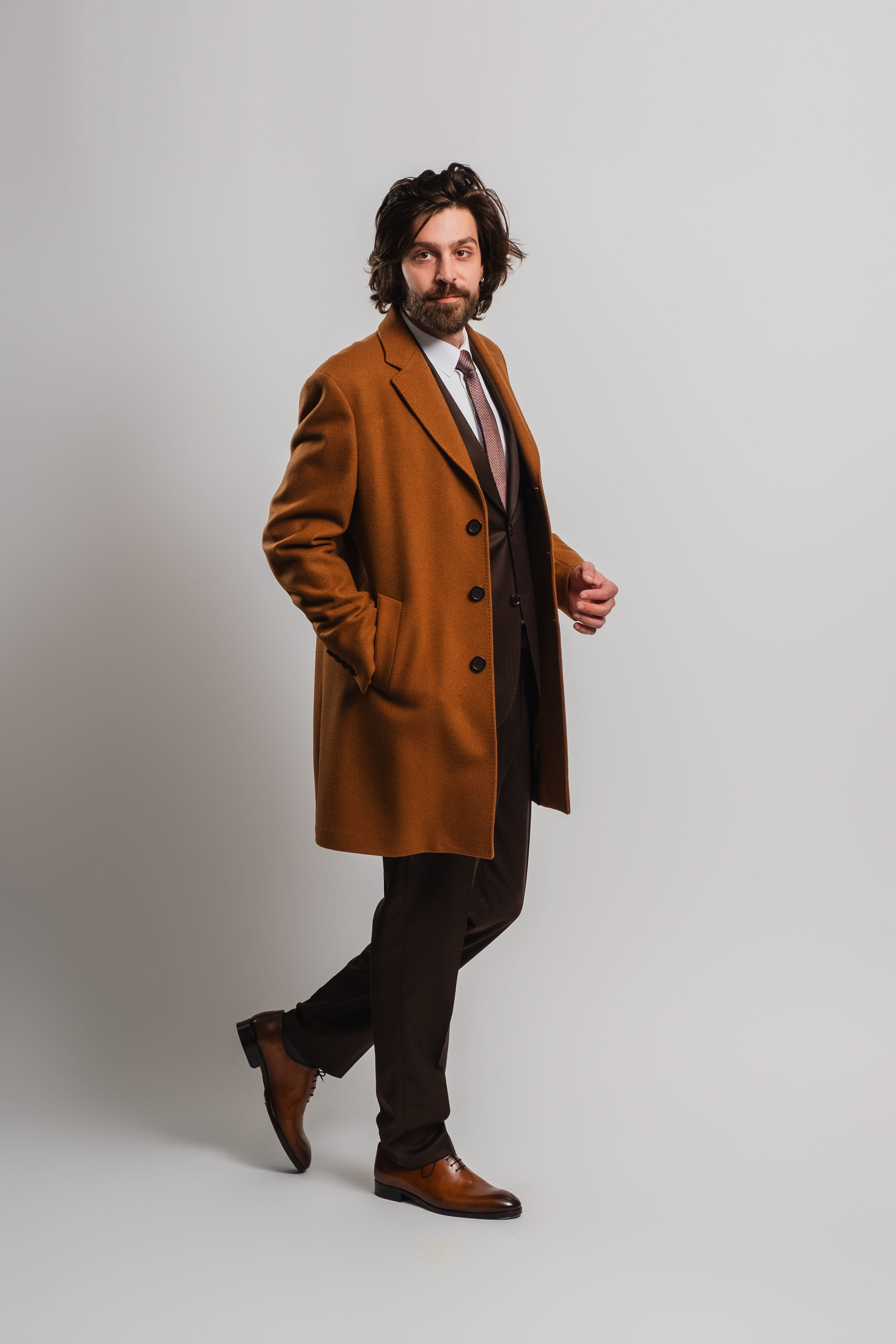 Manteau 3 boutons, poches droites avec rabats et col cranté, une fente, 65% Laine, 25%, Cachemire 15%